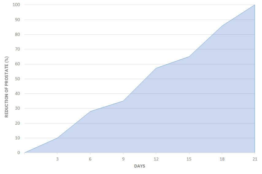 - 3 viikossa palautat eturauhasen normaalin koon – rauhanen palaa normaaliin kokoonsa, mikä eliminoi virtsarakkoon kohdistuvan paineen ja virtsaputken kaventumisen